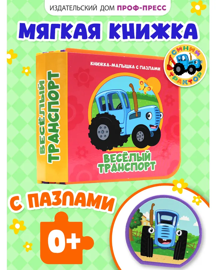 Книжка мягкая Проф-Пресс с пазлами на пене ЭВА Синий трактор Веселый транспорт