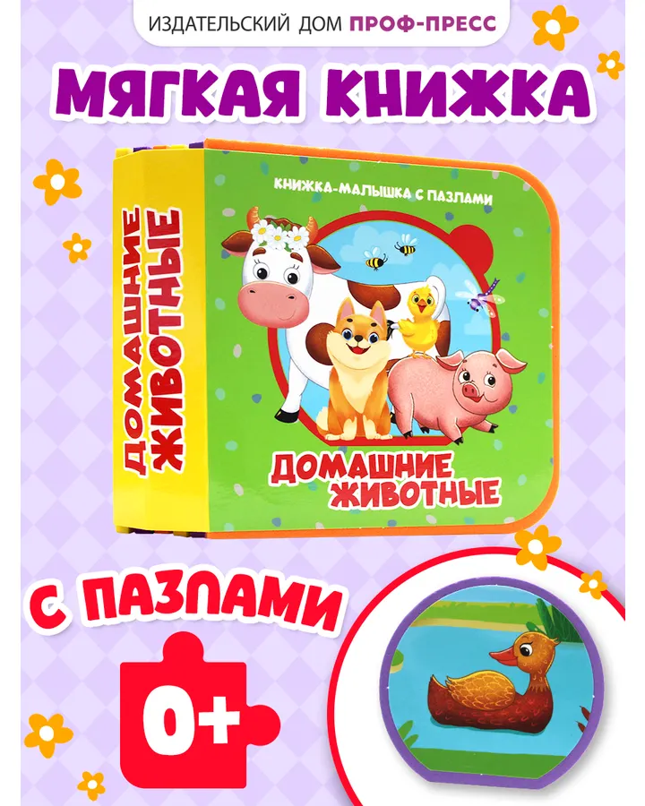 Книжка мягкая Проф-Пресс с пазлами на пене ЭВА Домашние животные