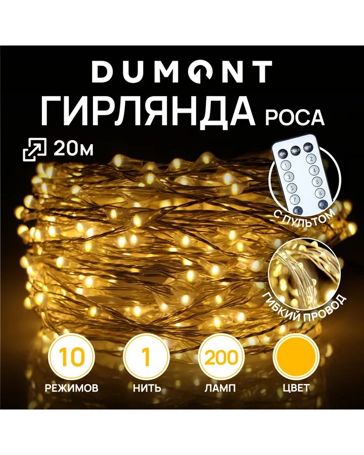 Гирлянда-нить роса DUMONT с пультом 20 м теплый свет 10 режимов