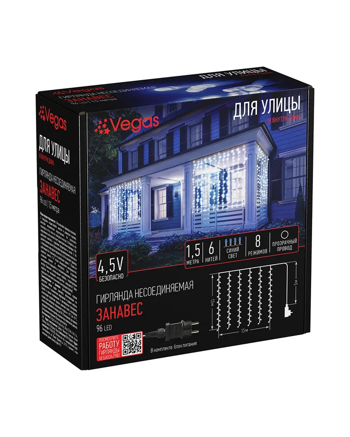 Светодиодная гирлянда NEON-NIGHT Дождь-занавес 1.5х1 м 8 режимов синее свечение