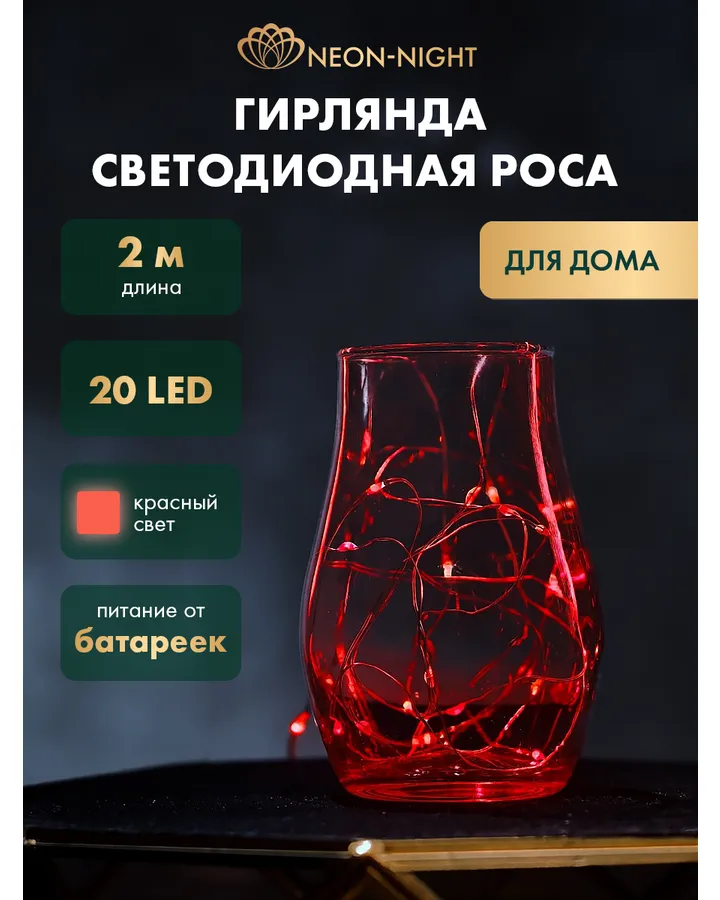 5Светодиодная гирлянда NEON-NIGHT Роса 2 м свечение мультиколор 303-009-1Гирлянда соответствует заявленной характеристике. Мило и уютно.