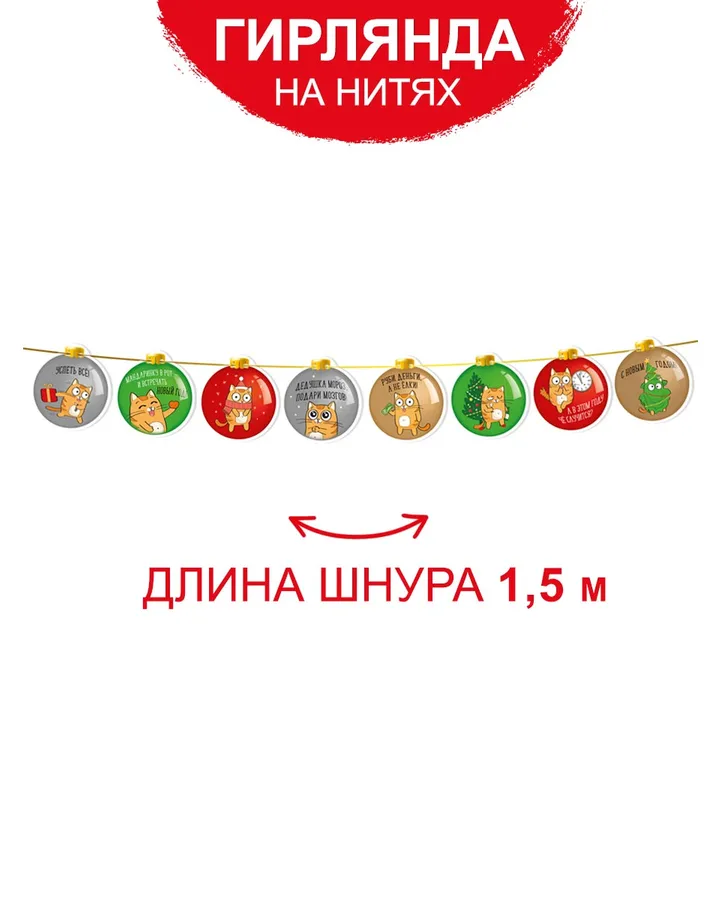 Гирлянда растяжка новогодняя Империя поздравлений Кот прикол 2024