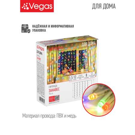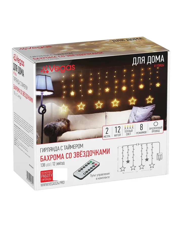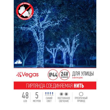 5Электрогирлянда Vegas Нить 50 холодных LED ламп контроллер 8 режимов зеленый провод 5 м 220 vНе заметна на елке, выглядит аккуратно