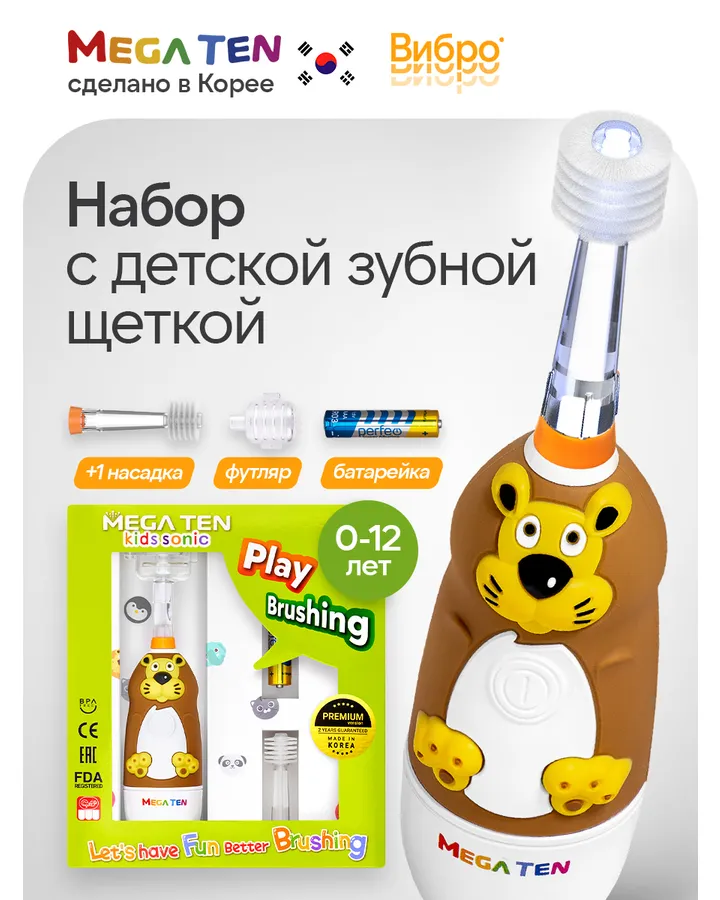 5Зубная щетка электрическая MegaTen от 0 лет 1 шт.Щетка огонь! технологичная, качественная, ребенок увлечен!