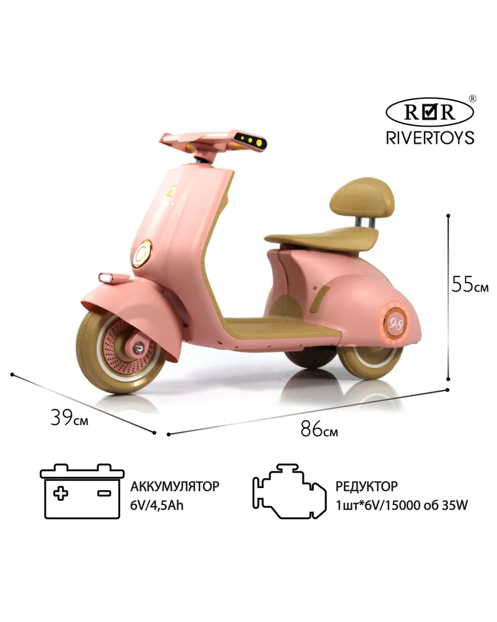 Электромобиль RIVERTOYS G009GG-PINK С пультом ДУ