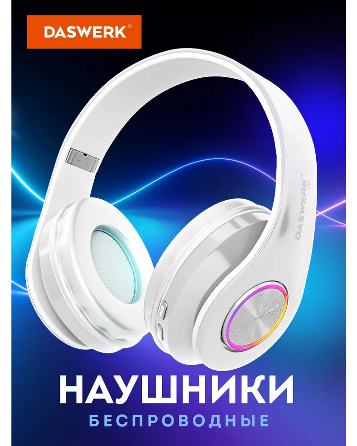 5Наушники беспроводные DASWERK большие игровые с подсветкой накладныеНаушники просто супер! Удобные и стильные.