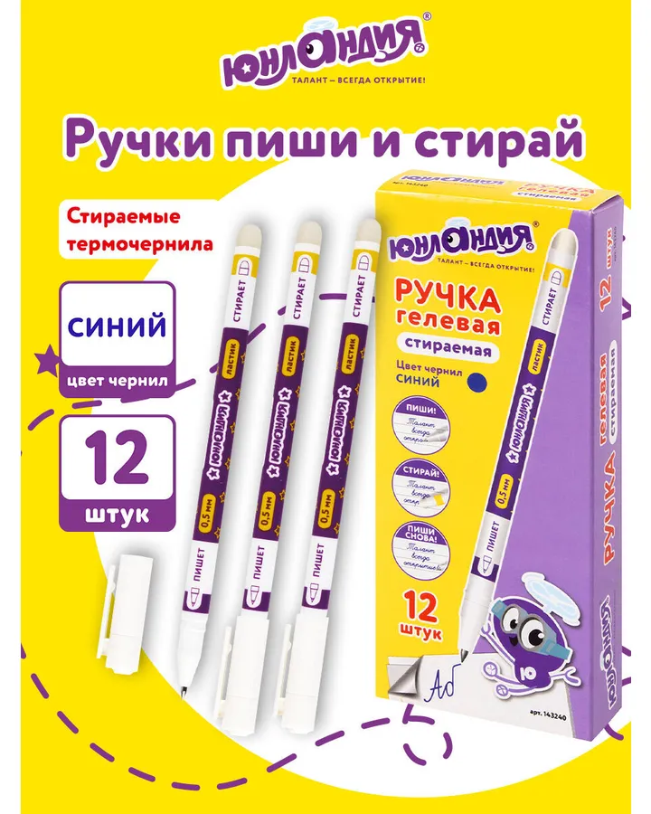 Ручка со стираемыми чернилами Юнландия 12 шт.