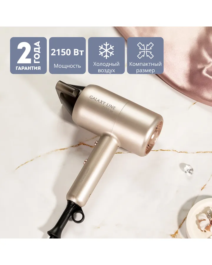 Фен Dewal Beauty YumMy Pink светло розовый 2000 Вт ионизация 1 насадка