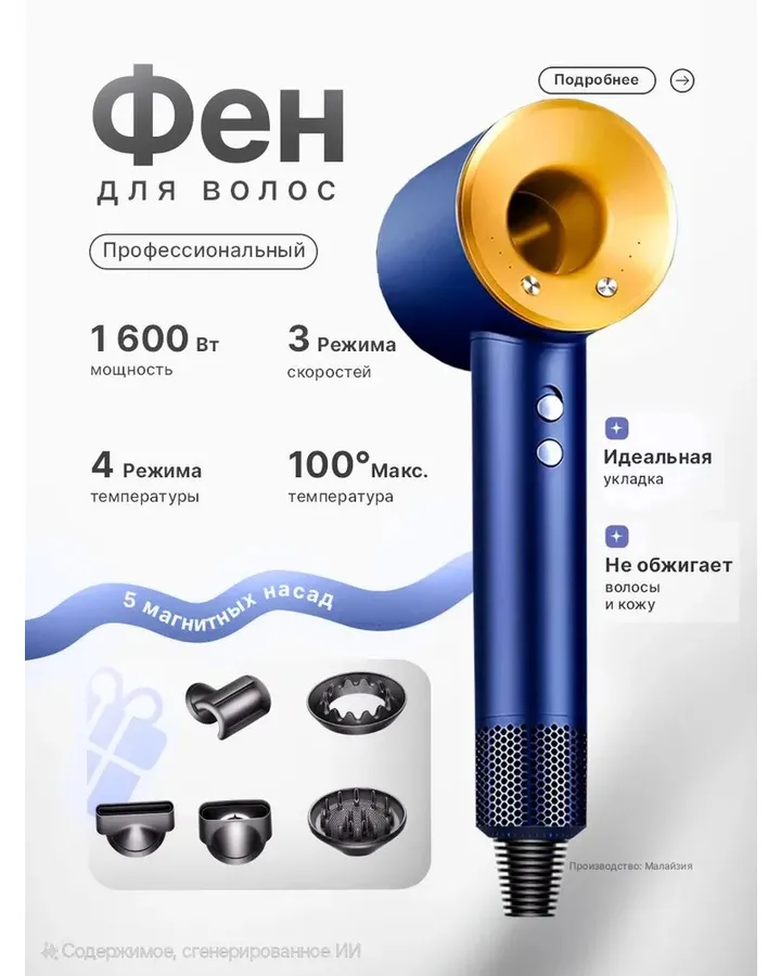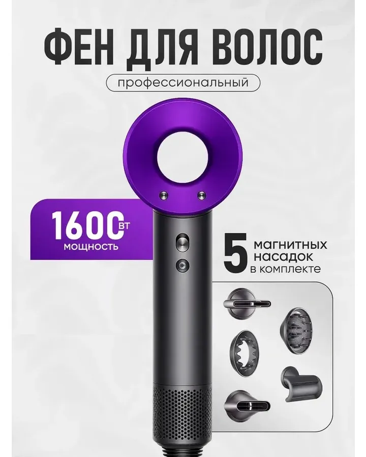 5Фен с 5 магнитными насадками CASTLELADY с ионизацией 1600 BT шнур 1,8 метра розовыйУже много лет использовала свой старенький фен и ждала, когда он сломается, чтобы наконец-то взять фен под Dyson, но, конечно, намного дешевле. И вот я дождалась — старенький фен сгорел. Коллега посоветовала именно этот фен. Она говорит: «Первый раз брала дочери в подарок на день рождения, дочка оценила. После этого заказала сестре в подарок и планирует взять маме на Новый год». Я думала: «Ну что же там за такой шикарный фен?» Заказала — и теперь каждый день делаю разнообразные укладки. Даже объём держится целый день! Ну прямо находка для тех, кто хочет шикарную укладку за небольшие деньги.