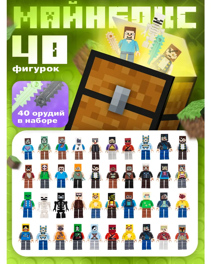 5Фигурка BAZUMI лего майнкрафт 40 шт набор MAXОтличные человечки, детям очень понравились, то, что хотели 👍