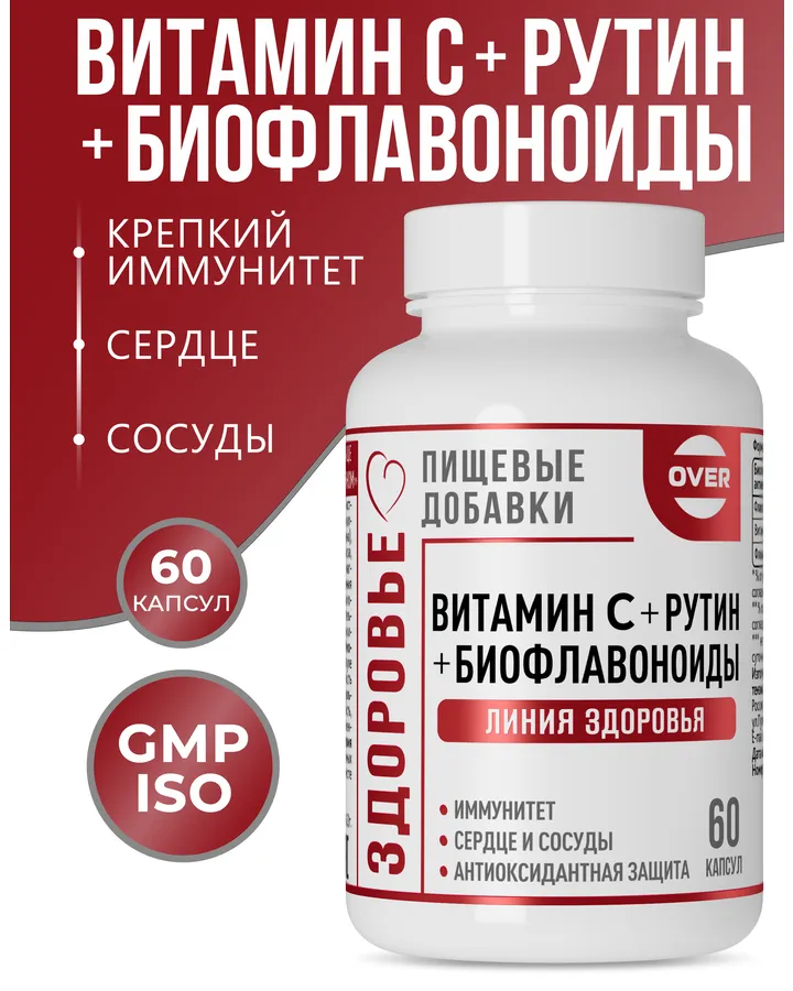 Витамин С+ Биофлавоноиды+Рутин OVER БАД для сосудов и иммунитета антиоксидантная защита 60 капсул