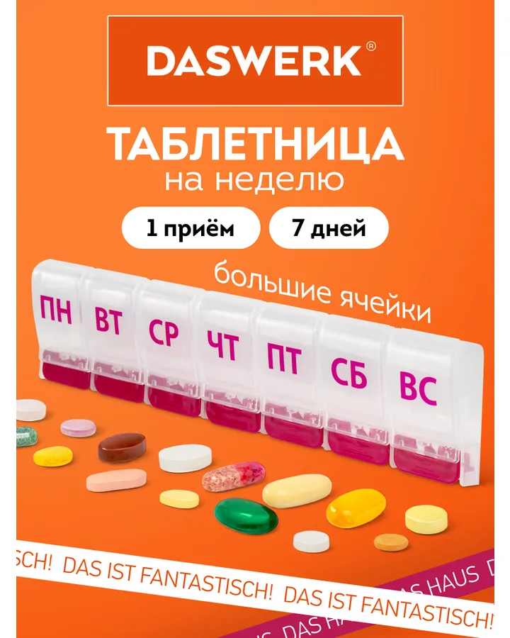 Таблетница DASWERK на неделю 4 приемаВообще классная штука! Теперь все витамины на месте.