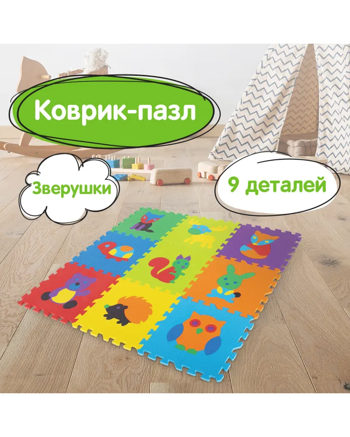 Коврик-пазл Юнландия Зверушки 90 x 90 см
