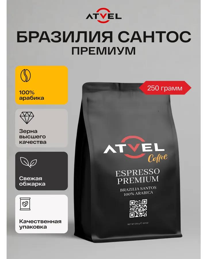 Кофе в зернах Atvel Brazilia Santos 100% Arabica Coffee 250 AC01BS-2