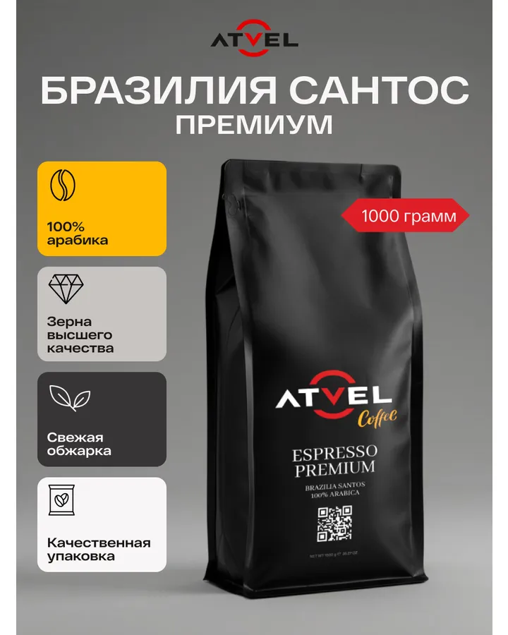 Кофе в зернах Atvel Brazilia Santos 100% Arabica Coffee 1000 AC01BS-1