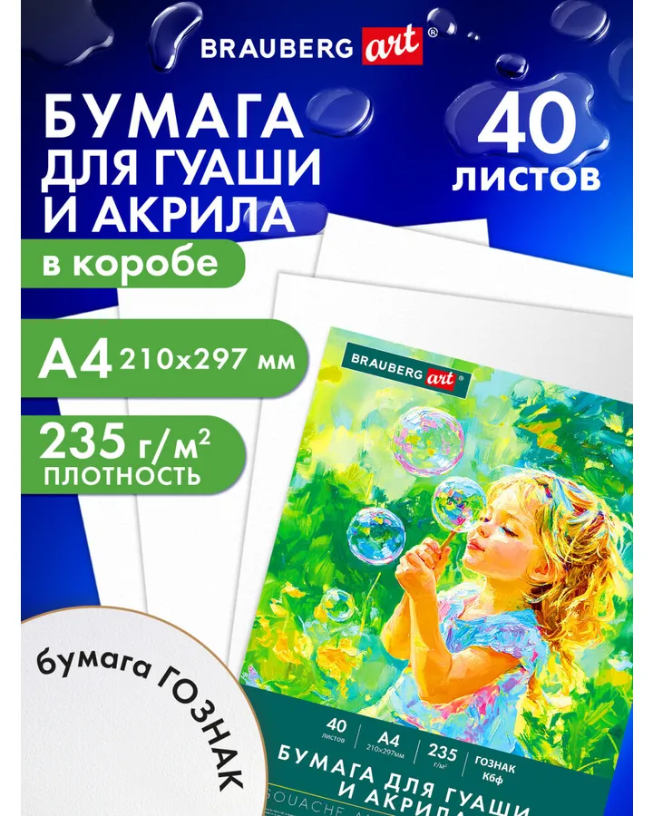 5Художественная бумага Brauberg для акварели 40 лист.Лучший выбор для акварели! Листы плотные и позволяют создавать невероятные детали!
