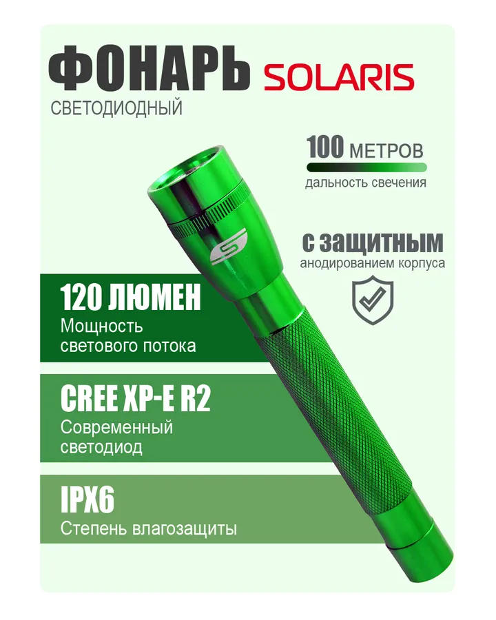 Ручной фонарь Solaris зелёный светодиодный T-5