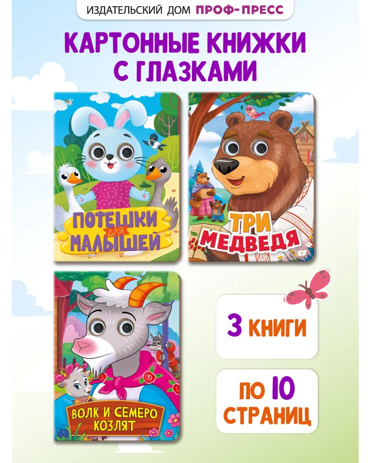 Книжки картонные Проф-Пресс с глазками 3 шт. Волк и семеро козлят+Потешки+Три медведя