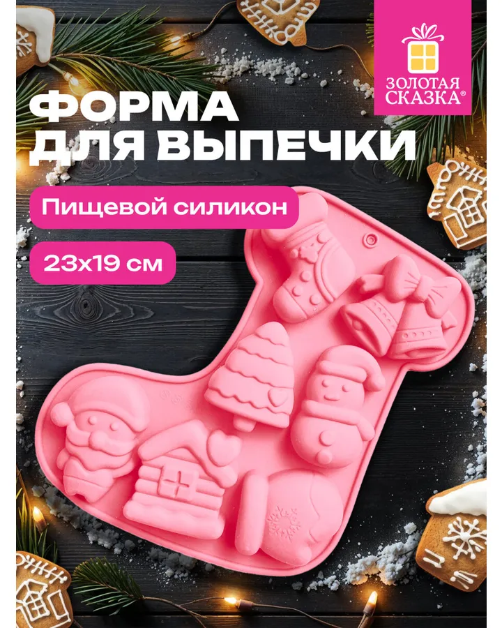 Форма для выпечки Золотая сказка формочки для льда и запекания новогодние силиконовые 7 ячеекОбожаю эту форму для выпечки! 🎄 Сделала кексы в виде сапожков и они получились просто волшебно!