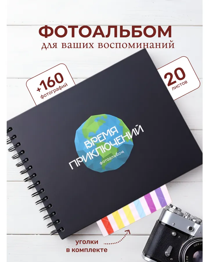 Альбом в приятном бархатном переплете, очень эстетично смотрится, листы плотные, в подарок положили наклейки и ленту, на которую можно клеить фото, очень понравилось