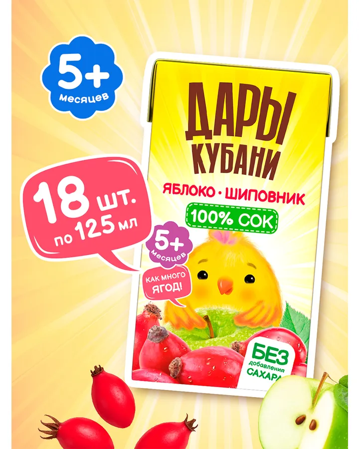 Сок Дары Кубани Яблоко-Шиповник с 5 мес 0.125 л 18 шт.