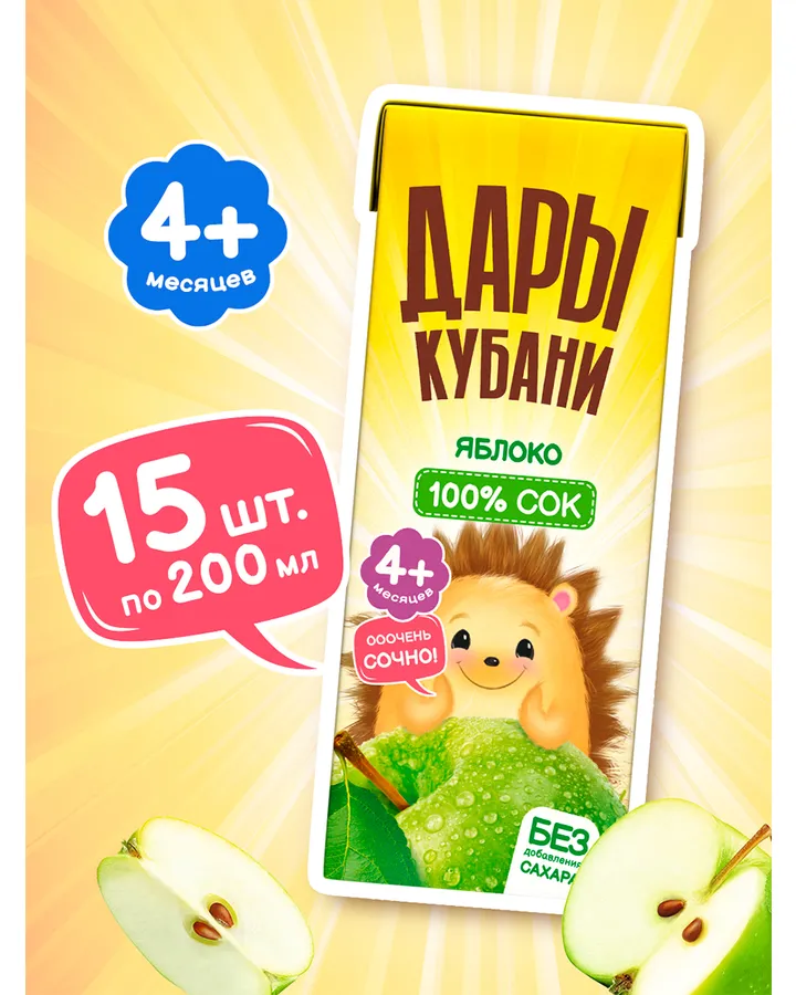 Сок Дары Кубани Яблоко с 4 мес 0.2 л 15 шт.