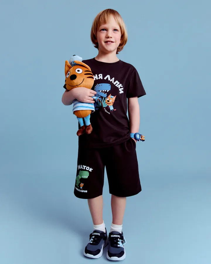 Футболки для мальчиков. В коллекциях брендов встречаются как базовые однотонные модели, так и варианты с яркими принтами: динозавры, машинки, морская тематика. Для лета подойдут майки и футболки из хлопка или модала — эти ткани хорошо пропускают воздух и не вызывают раздражения на коже.