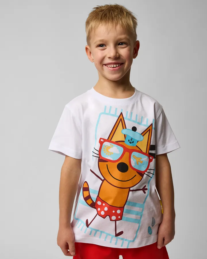 Футболка Три КотаОтличная футболка, за несколько стирок рисунок на месте, ребенок в восторге