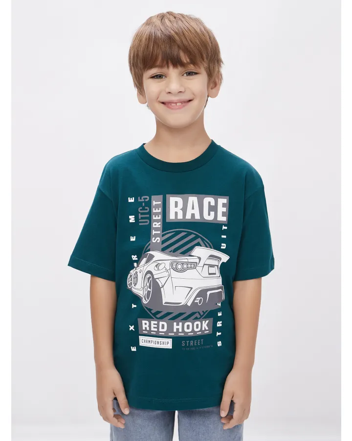 Яркая, стильная футболка оверсайз. Нам понравилась. На упитанного ребенка