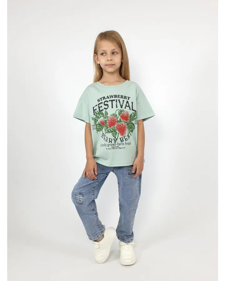 Красивая футболочка, ребенку очень нравится, после стирки вид не потеряла