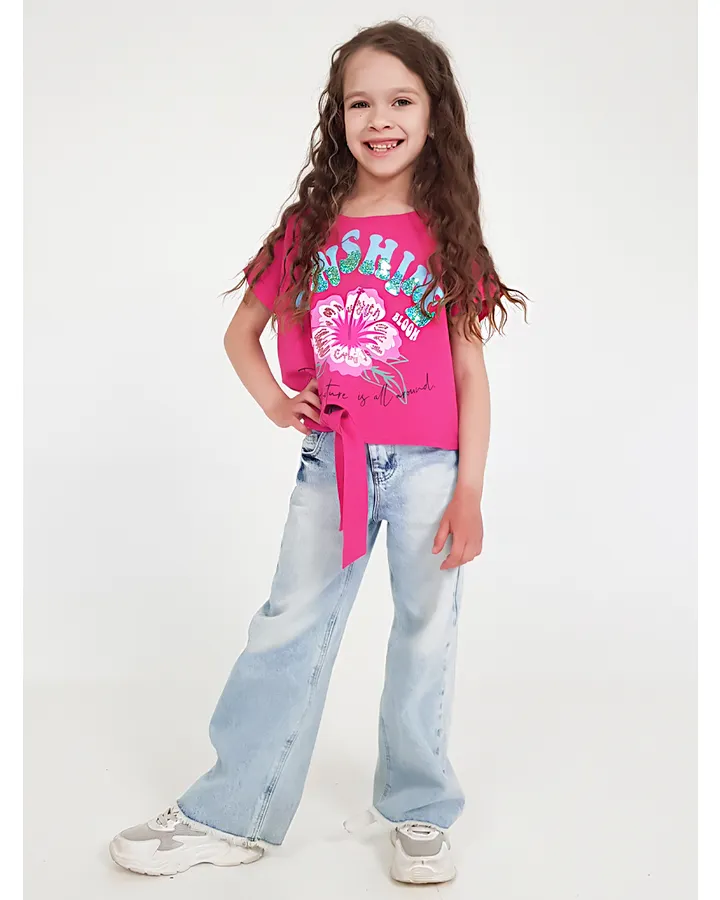 Для девочек доступны яркие топы с принтами, изображающими животных, мультфильмы или цветочные узоры. Мальчикам понравятся модели с надписями, граффити или спортивными мотивами. Размерный ряд позволяет подобрать футболку как для малышей, так и для подростков. Материалы выдерживают частую стирку, сохраняя форму и насыщенность красок. В холодную погоду футболки можно сочетать с толстовками, свитерами или жилетами. В жаркие дни футболки хорошо комбинируются с шортами, леггинсами или юбками.