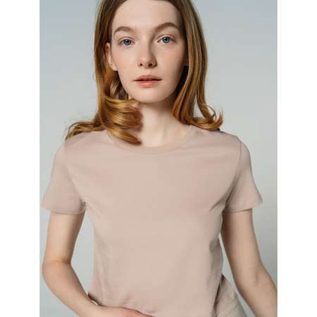 Коротенькая хлопковая футболка,рисунок как по мне в реале тускнее. На размер 85с сильно в обтяжку в груди,так как на модели свободнодумаю размера на два если меньше брать.и сильно в обтяжку плечи 50 размер.