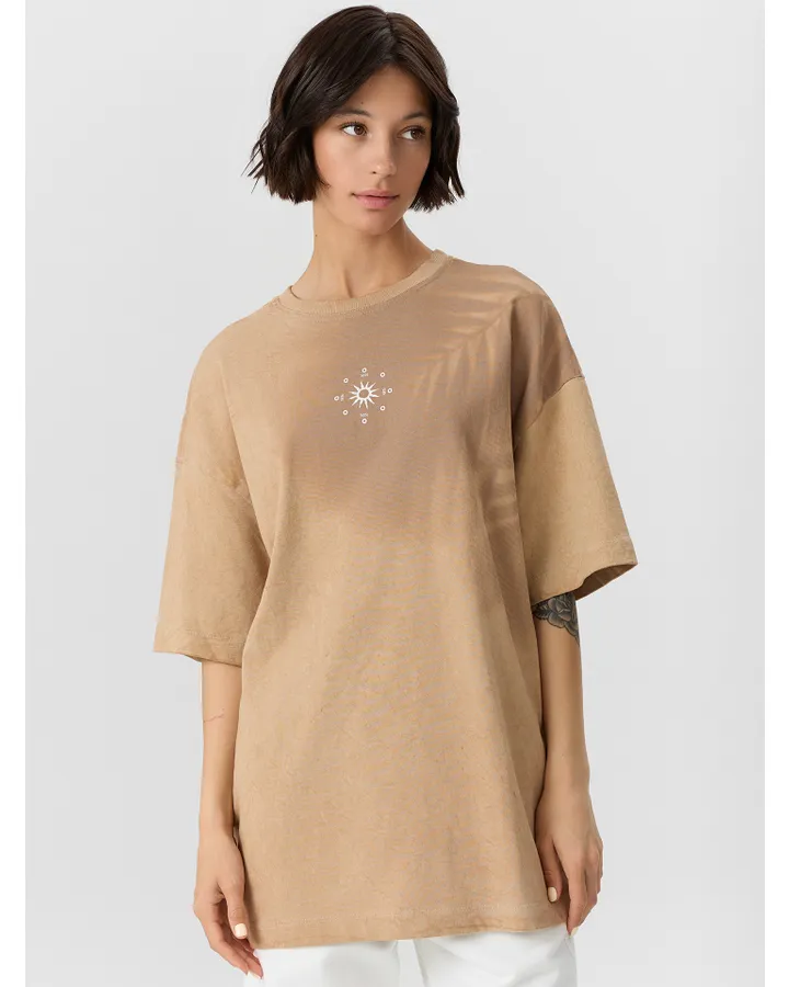 Отличная футболка с ярким принтом, светится в темноте. Всё бы хорошо, только есть ощущение, что она перекосилась, и приходится всё время поправлять её. Возможно так сшита, что неправильно выбрали основную нить при выкройке.