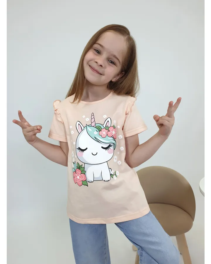 Футболка красивая, цвет яркий. Хорошо тянется с ширину. К сожалению маломерит на 1 или 2 размера.