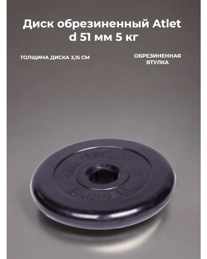 D 51 мм чёрный 5,0 кг Atlet MbBarbell Диск обрезиненный