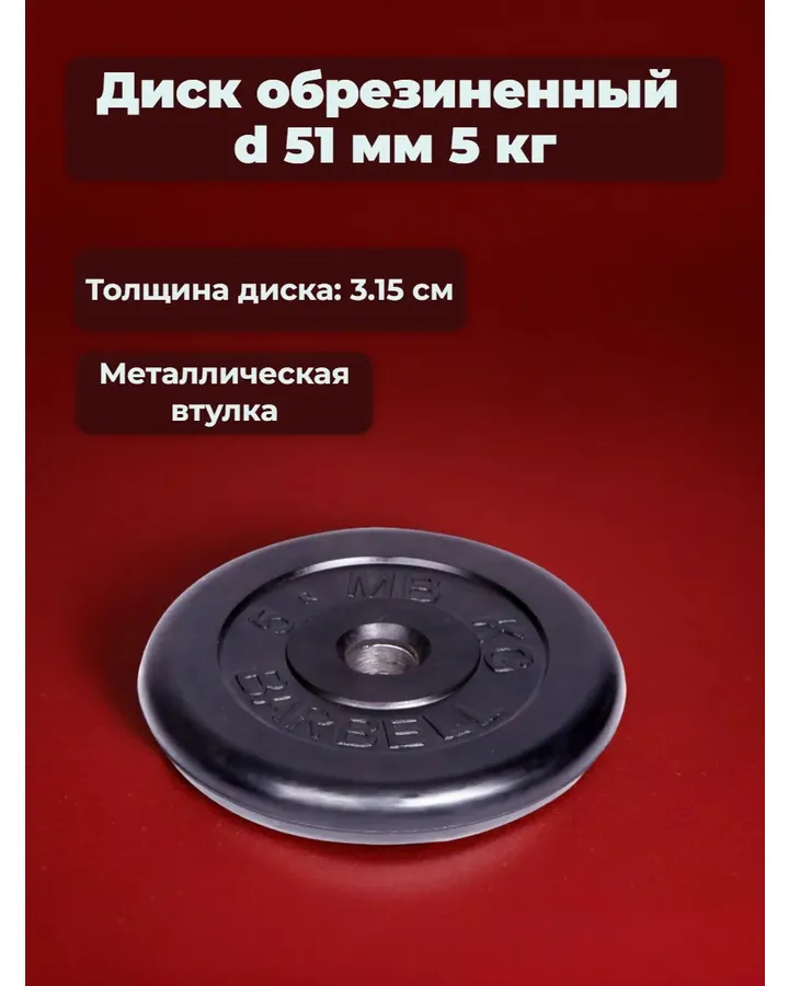 D 51 мм чёрный 5,0 кг MbBarbell Диск обрезиненный