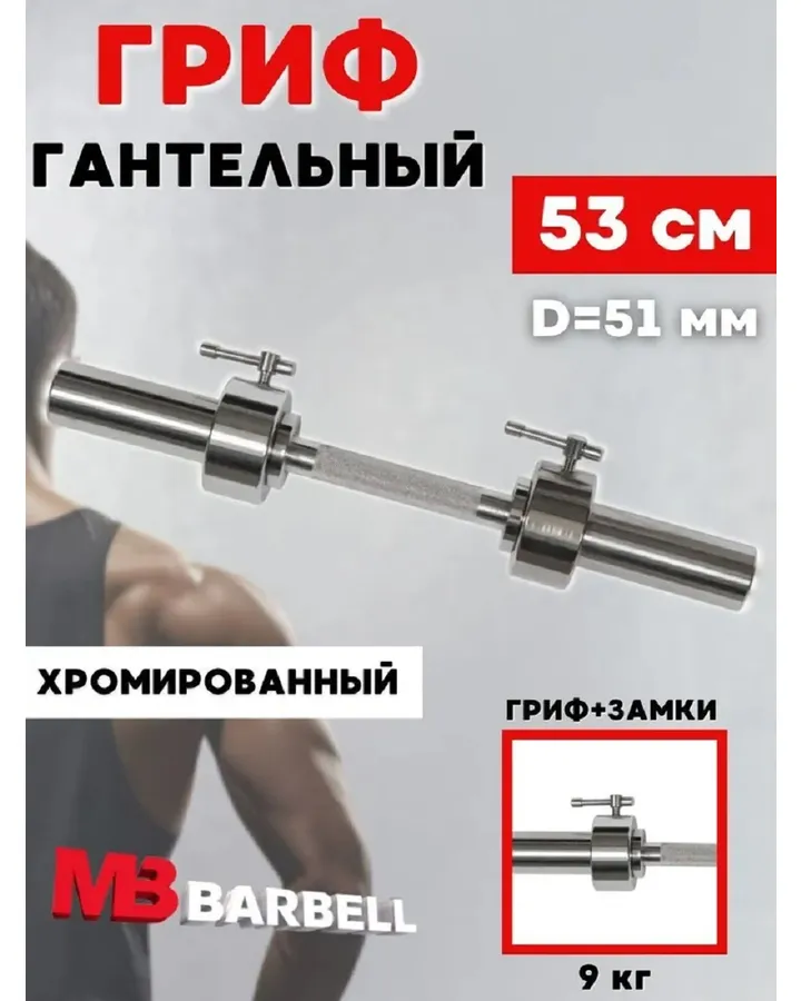 D 50 мм ручка/стопорный L530 мм MbBarbell Гриф гантельный