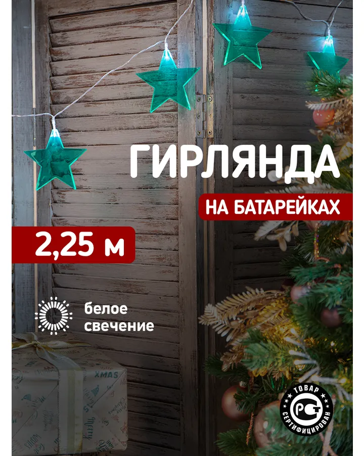 Светодиодная гирлянда NEON-NIGHT Бирюзовый звездопад 2.25 м белое свечение
