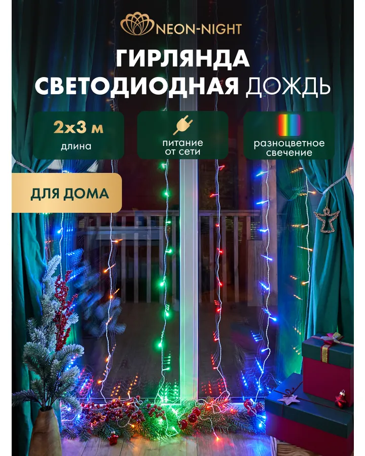 Светодиодная гирлянда NEON-NIGHT Дождь-занавес 2х3 м 8 режимов свечение мультиколор