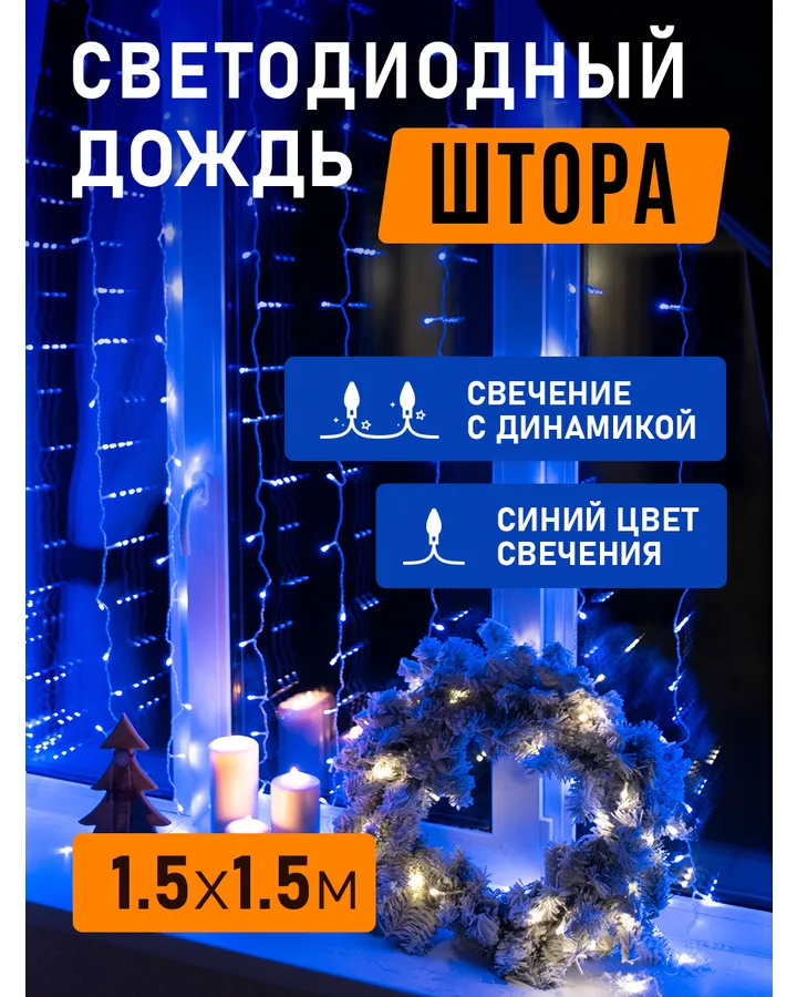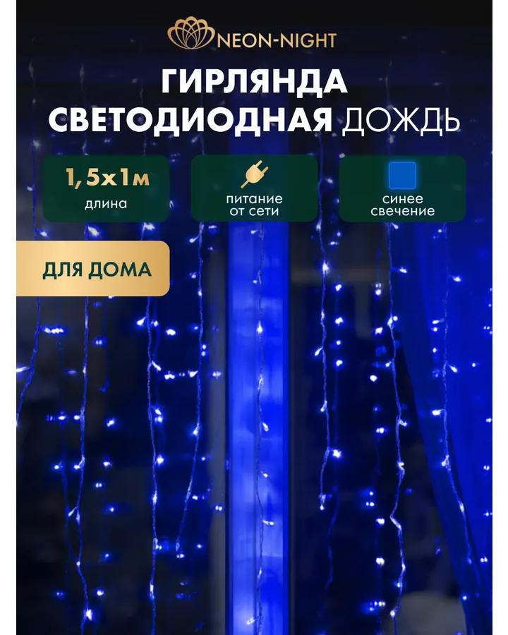 Светодиодная гирлянда NEON-NIGHT Дождь-занавес 1.5х1 м 8 режимов синее свечение