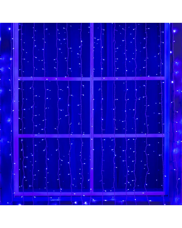Гирлянда Luazon «Занавес» 2 × 9 м IP44 УМС белая нить 1800 LED свечение синее 220 В