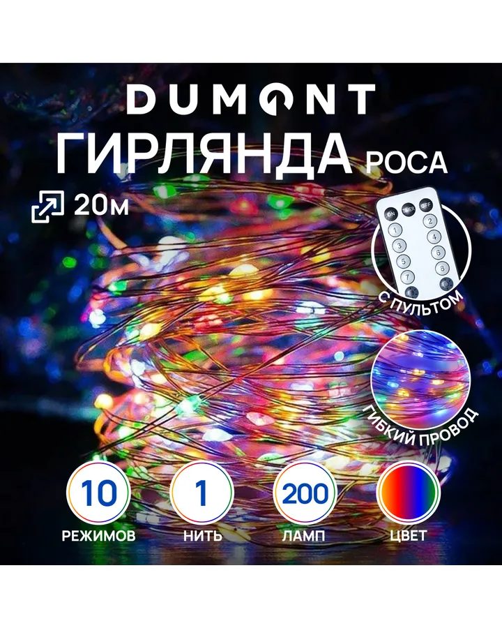 Гирлянда-нить роса DUMONT с пультом 20 м мультиколор 10 режимов