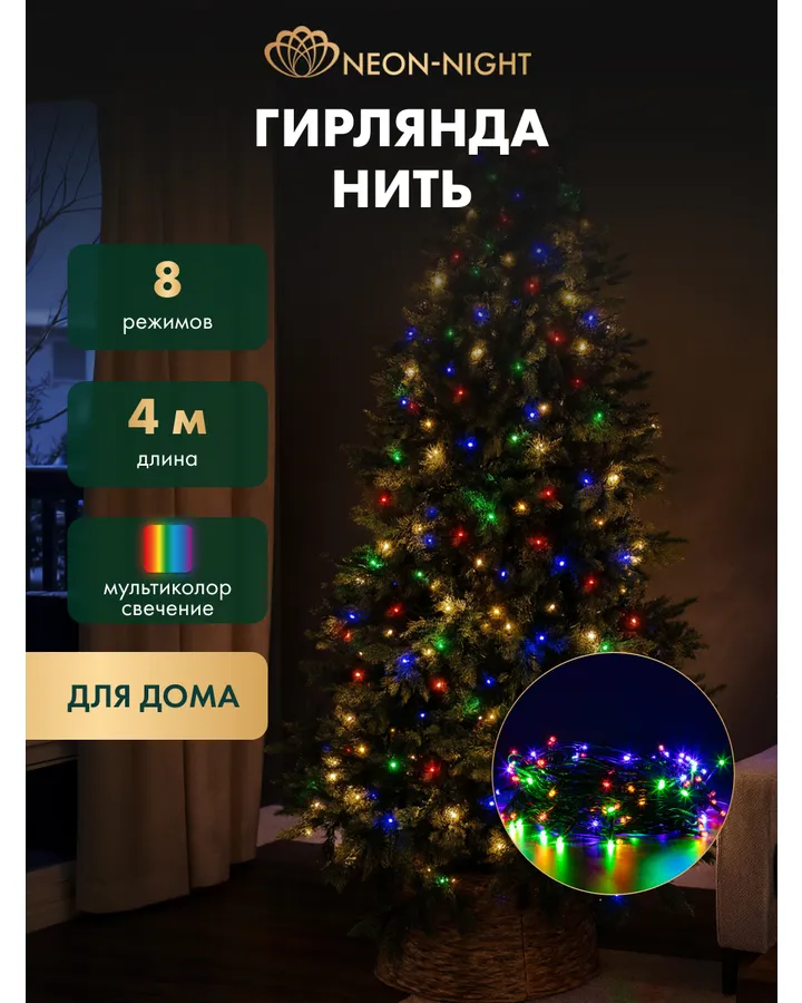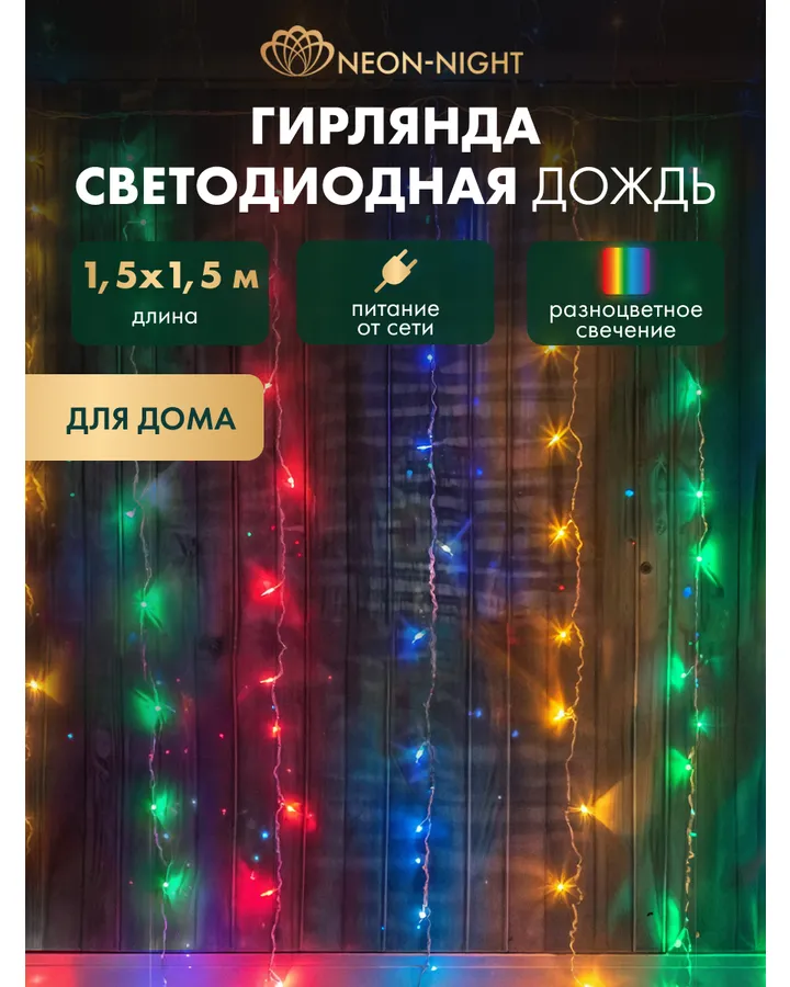 Светодиодная гирлянда NEON-NIGHT Роса 2 м свечение мультиколор 303-009-1Гирлянда соответствует заявленной характеристике. Мило и уютно.