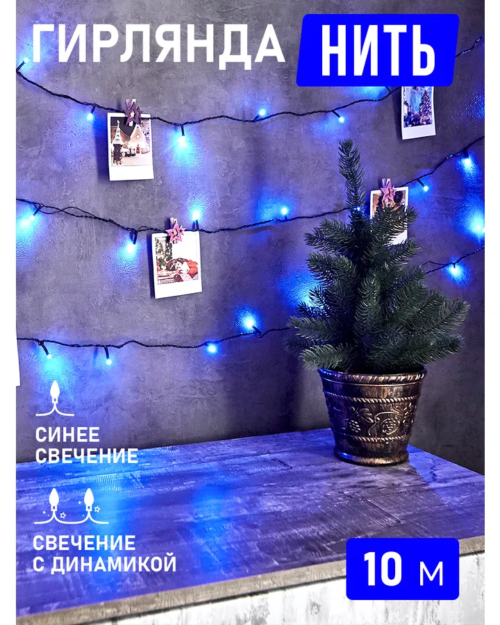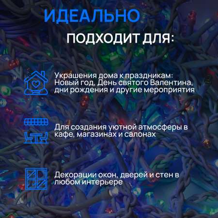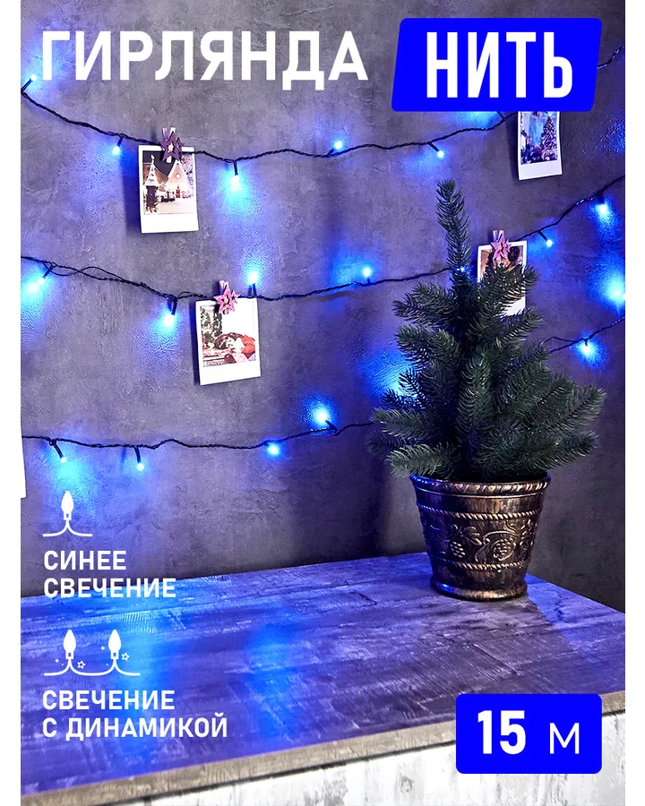 Светодиодная гирлянда NEON-NIGHT Твинкл-лайт 15 м 8 режимов синее свечение👍
