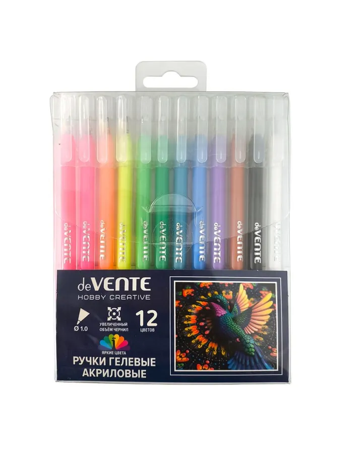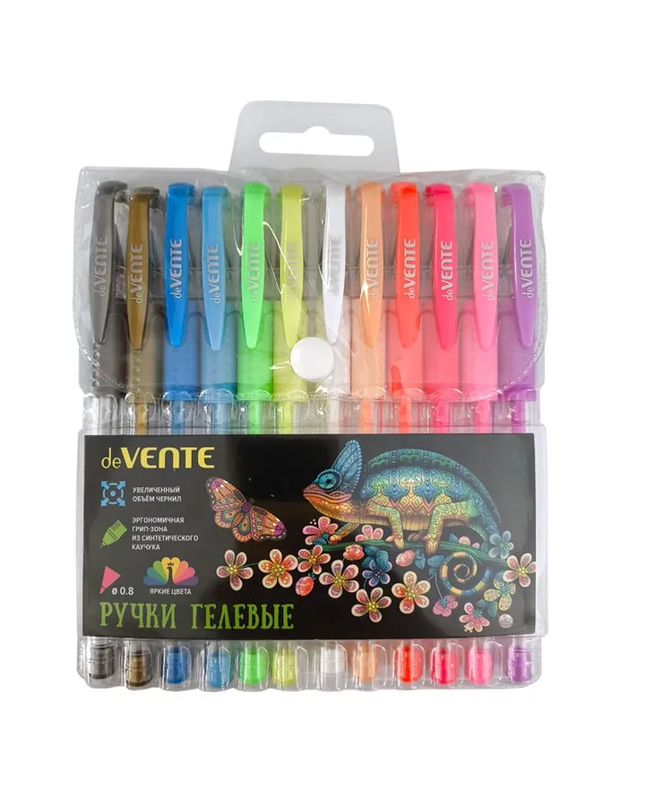 Ручка гелевая deVENTE 12 шт.Очень классные. Покупали для рисования на чёрной бумаге. Пишут отлично. Вообще очень хороший производитель. Стараемся брать канцелярию и товары для рисования его производства
