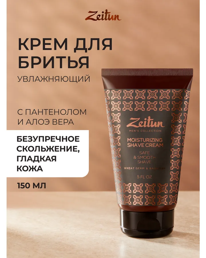 5Крем для бритья Zeitun против раздражений с алоэ вера и пантенолом 150млОтличная косметика для мужчин, гладкое бритьё без порезов
