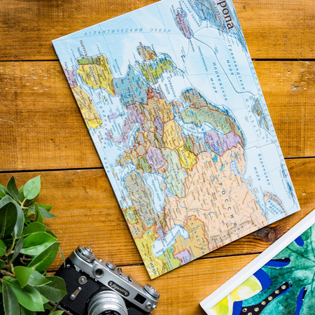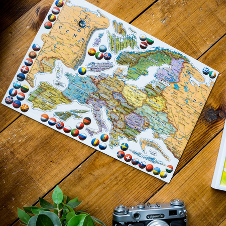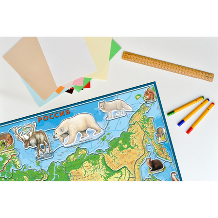 5Детская карта мира АГТ Геоцентр Страны и Достопримечательности настольная двусторонняя 59х42 смКарта очень познавательная, яркая