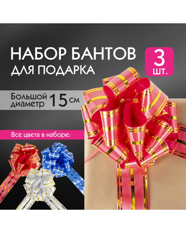 Бантик подарочный Золотая сказка упаковочный диаметр 15 см 3 шт