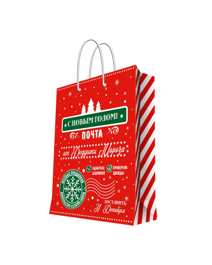 Пакет подарочный Феникс Презент новогодний с ламинацией Почта от Дедушки Мороза 26*32.4*12.7см 140г/м2 93108FE