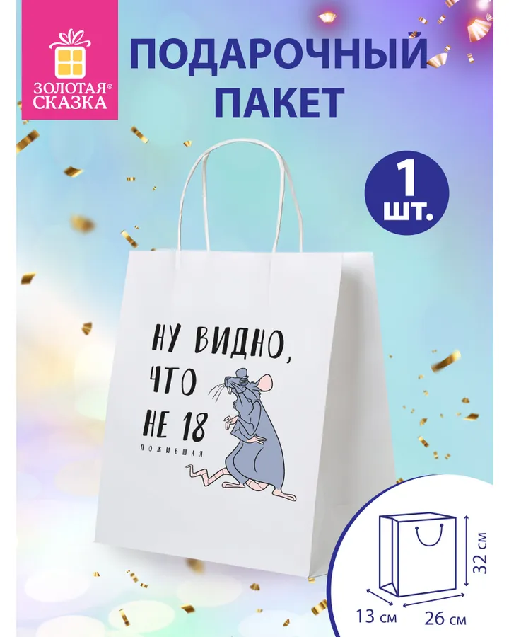 Пакет подарочный новогодний Феникс Презент Колокольчик из крафт-бумаги 18*23*10смКрасивый качественный пакет
